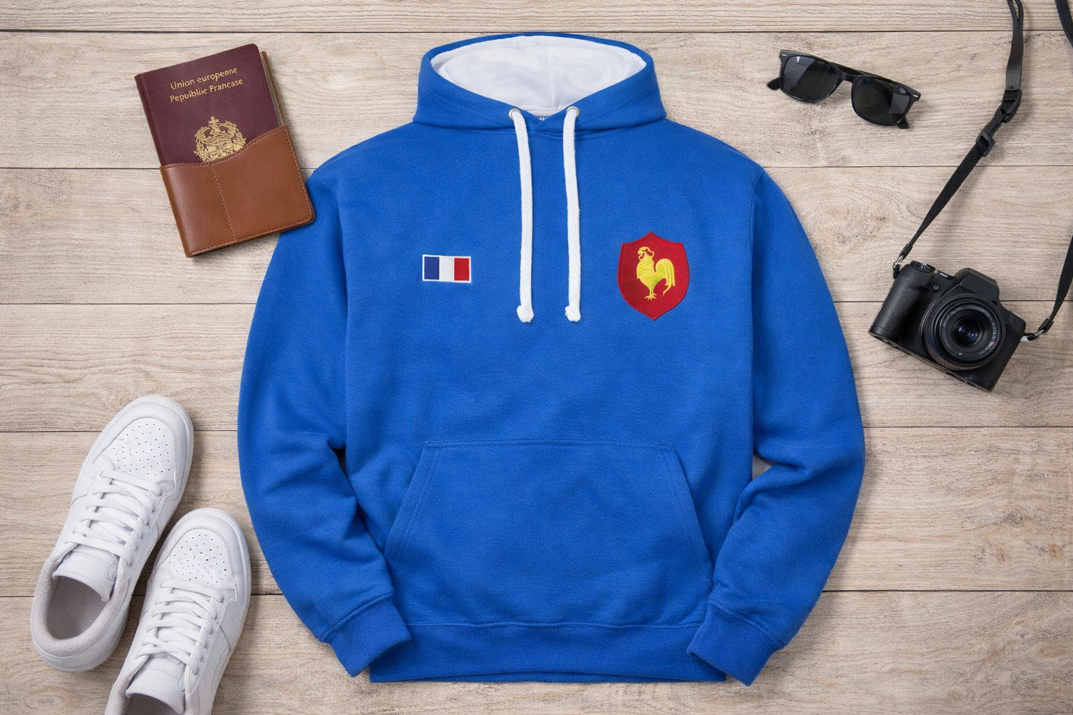This men’s royal blue hoodie features premium embroidered details, including the French tricolour flag and a traditional rooster crest — a timeless symbol of French heritage. Designed for everyday comfort, it’s the perfect blend of casual wear and standout style.